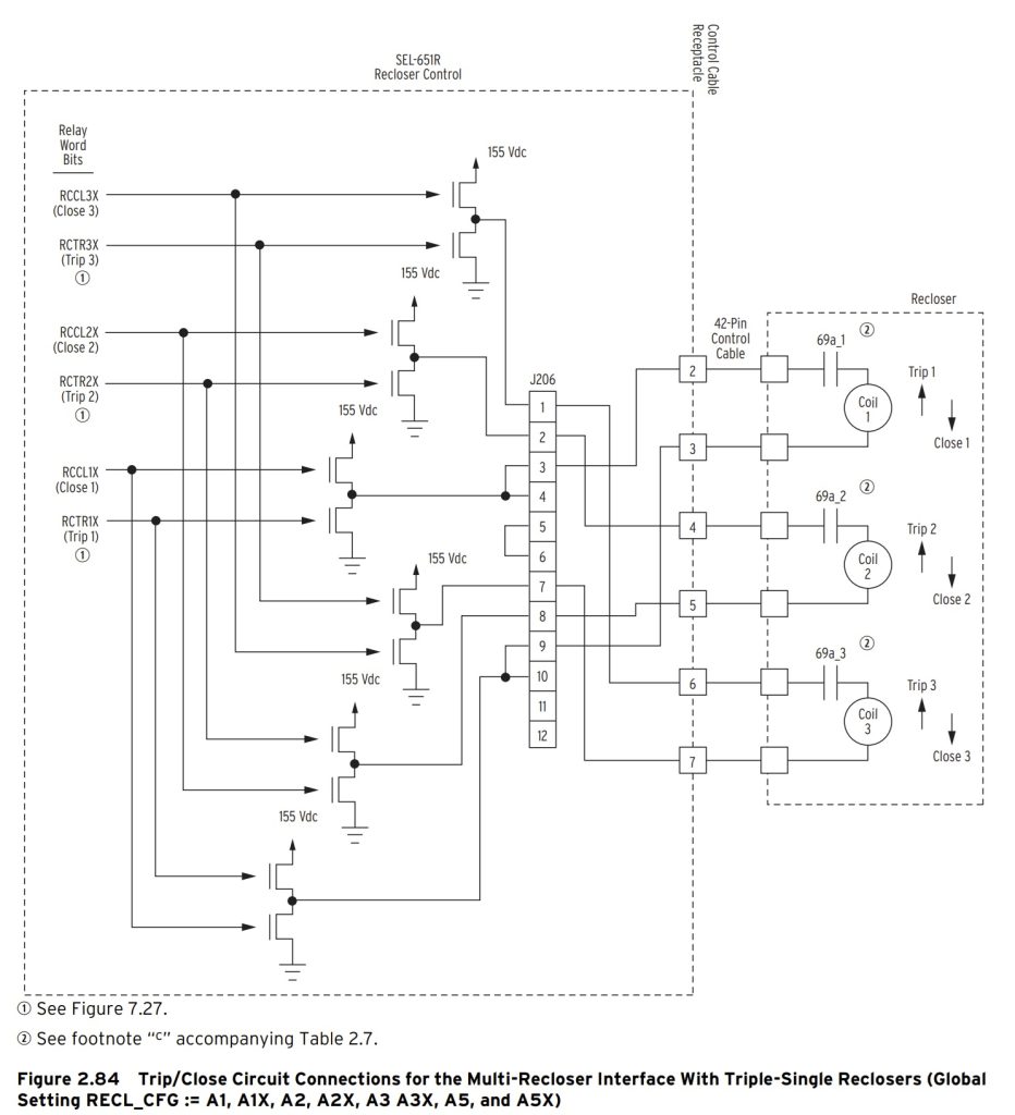 An SEL-651R-2 control circuit per Figure 2.84 of the controller manual: